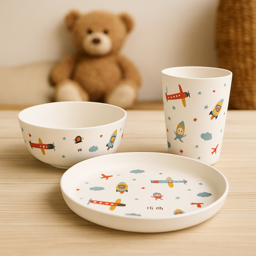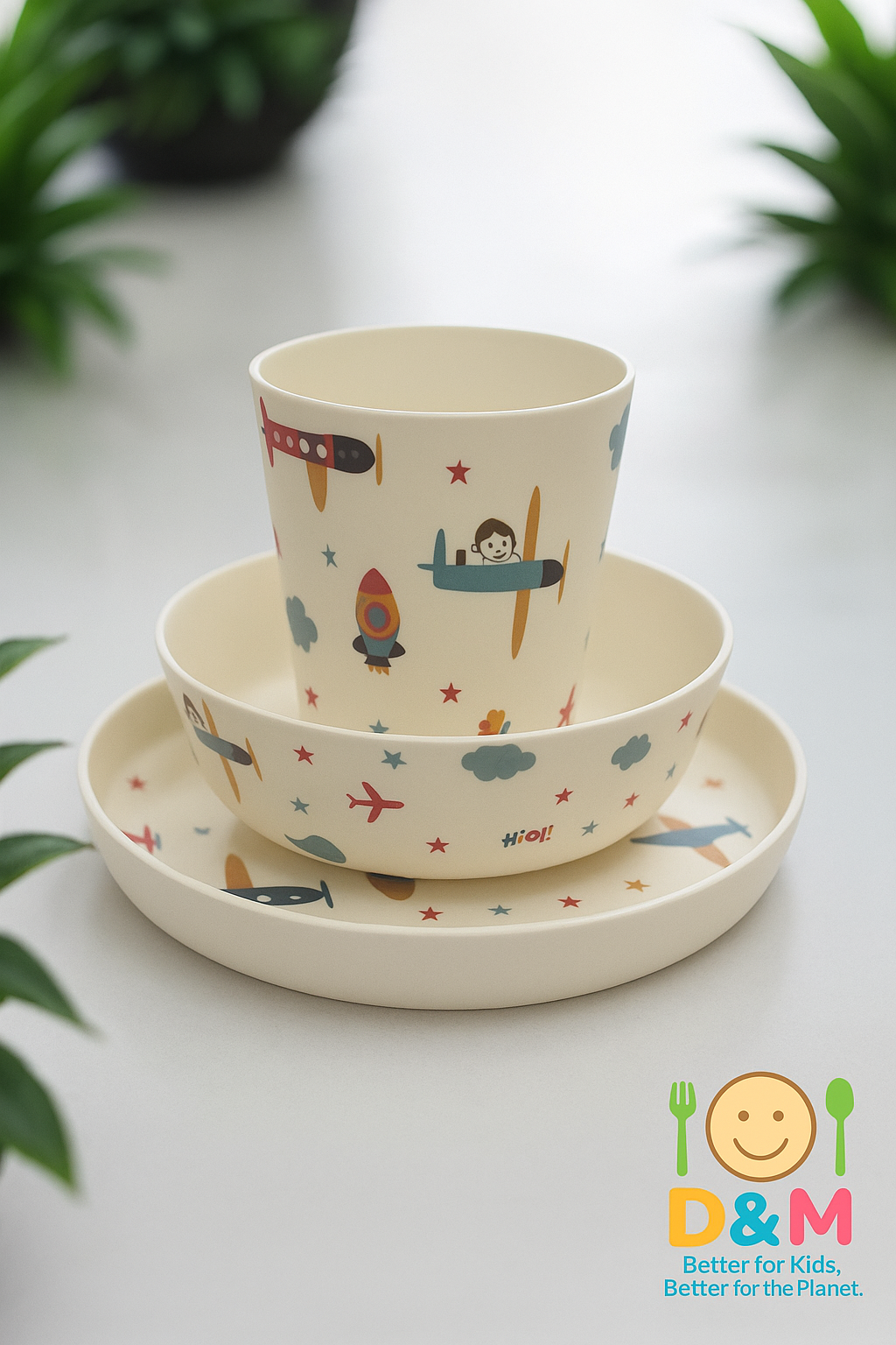 Eco-Friendly Bamboo Kids Dinner Set-Aeroplane Print